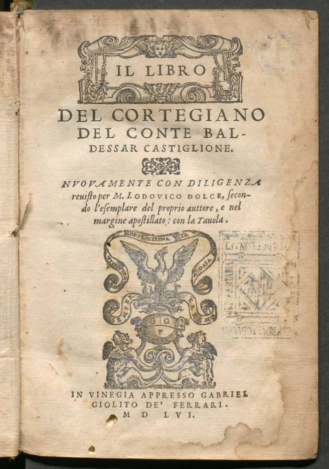 El Museu del Renaixement de Molins de Rei exhibeix un nou llibre de la col·lecció del CRAI Biblioteca de Fons Antic, El cortegiano de Baldassarre Castiglione, en una edició veneciana de Giolito de'Ferrari de 1556.