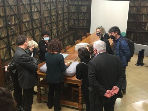 Per tal de respectar les mesures COVID, els visitants es van dividir en tres grups i, a més de donar alguna pinzellada de la seva història i els trets més essencials del CRAI biblioteca de fons antic, es van ensenyar dos manuscrits, un incunable i dos impresos del segle XVI. L'interès pel fons de la biblioteca va ser evident i va representar un punt de partida per als nous projectes en aquesta nova etapa.