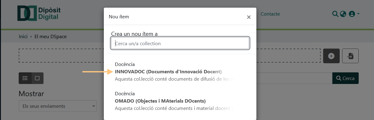 Introdueix INNOVADOC a la casella de cerca o seleccioneu la col·lecció directament de la llista de resultats.